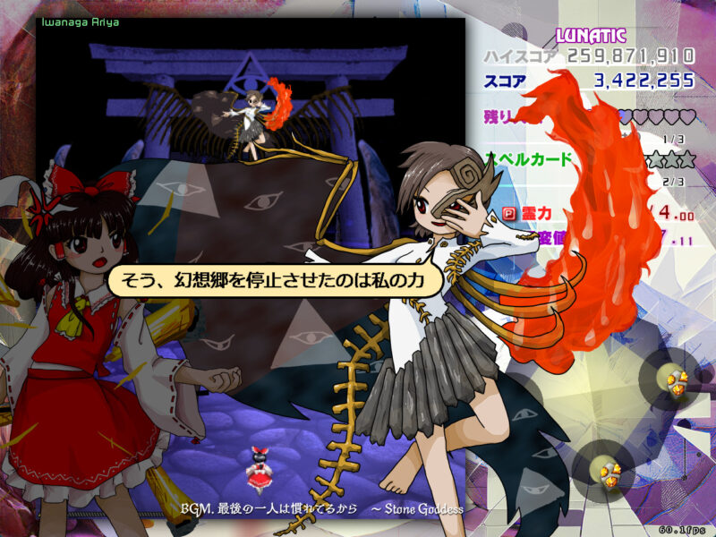 弾幕の雰囲気も、永遠が「静寂」なら、混沌は弾が四方から跳ね返って一斉に襲いかかる「秩序の乱れた賑やかさ」。後者の方がいつもの幻想郷に相応しいのかもしれません。